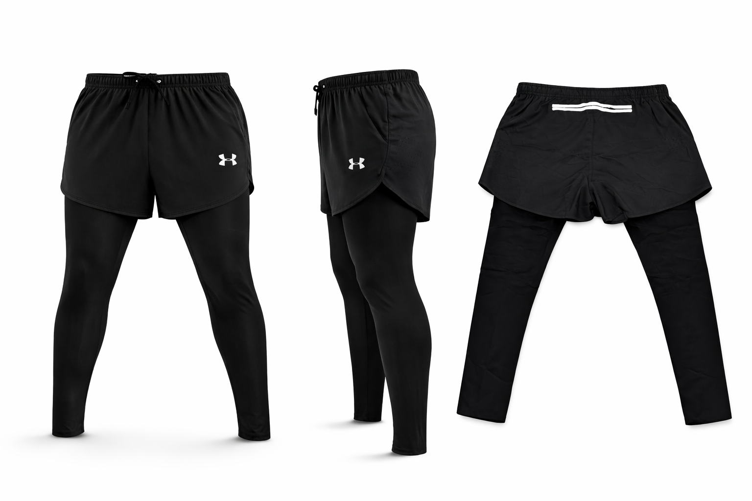 Under Armour Hybrid Performance Shorts with Compression Tights Train harder. Move freer. Stay sharp. Engineered for athletes who demand performance and style, this 2-in-1 hybrid design combines a lightweight outer short with full-length compression tights to deliver maximum comfort, support, and mobility. Built for gym sessions, running, outdoor training, and everyday active wear. Key Features: Dual-layer construction: breathable outer short + supportive compression tights Lightweight, sweat-wicking fabric to keep you dry 4-way stretch for unrestricted movement Elastic waistband with adjustable drawstring for secure fit Reflective back pocket for small essentials and visibility Premium athletic fit for a clean, confident look.